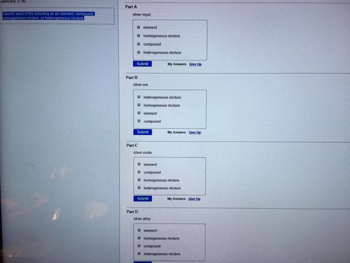 Solved Classify Each Of The Following As An Element Compound Chegg Com